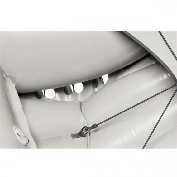 Das Ontario 450 S ist eine längere Version des bewährten Ontario 420. Ausgestattet ist es, zusätzlich zum Ontario 420, mit einem Selbstlezendem Boden und bietet mehr Platz für Gepäck. Das Boot eignet sich gut für Flusswanderungen mit der ganzen Familie kann aber auch als Wildwasserboot bis zur Stufe 3 genutzt werden. Sie werden überrascht sein, wie schnell und wendig sich das Ontario 450 S auf ruhigem Wasser paddeln lässt. Es ist zudem das schnellste Boot aus der Gumotex Produktion für eine so große Personenanzahl. Durch den Selbstlenzenden Boden fließt das Wasser, welches ins Boot gelangt, durch die Öffnungen im Heck wieder nach draußen.