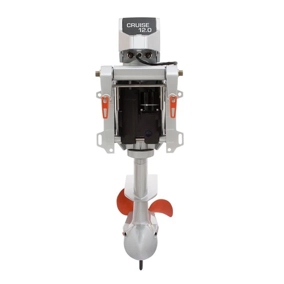 Der neue Cruise 12.0 ist nicht nur eine imposante Erscheinung, er wartet auch mit eindrucksvollen technischen Eckdaten auf. Hightech vom Schaftkopf bis zur Finne – und das alles komplett emissionsfrei. Der mit einem 25 PS Benzin-Außenborder vergleichbare Cruise 12.0 lässt sich mit wenigen Werkzeugen einfach an Ihrem Boot montieren. Für den Betrieb ist eine Versorgung mit mind. zwei (Power 48-5000) oder vier Lithium-Batterien (Power 24-3500) vorzusehen.